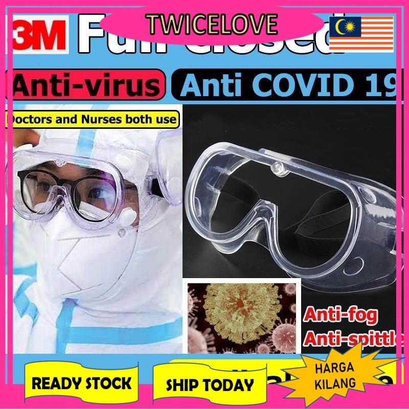 Ready Stock Twicelove 3m 1621af Medical Grade Safety Goggles Anti Virus Anti Flog Anti Splash Shopee Malaysia